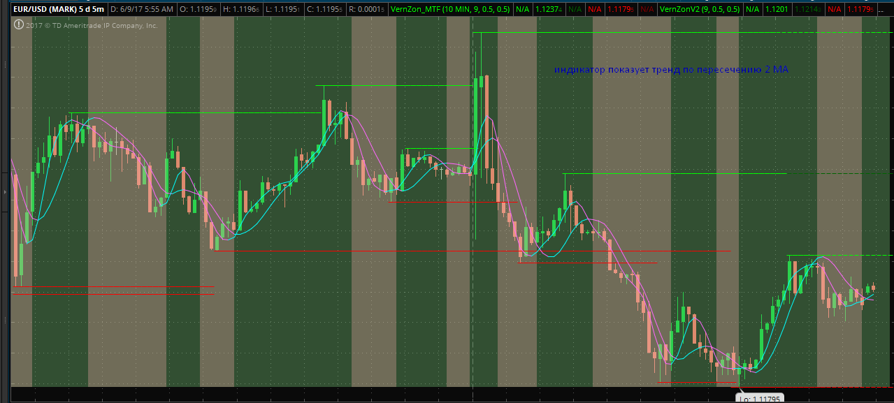 Индикатор показует тренд по пересечению ма , можно сделать и мтф версию подобного!