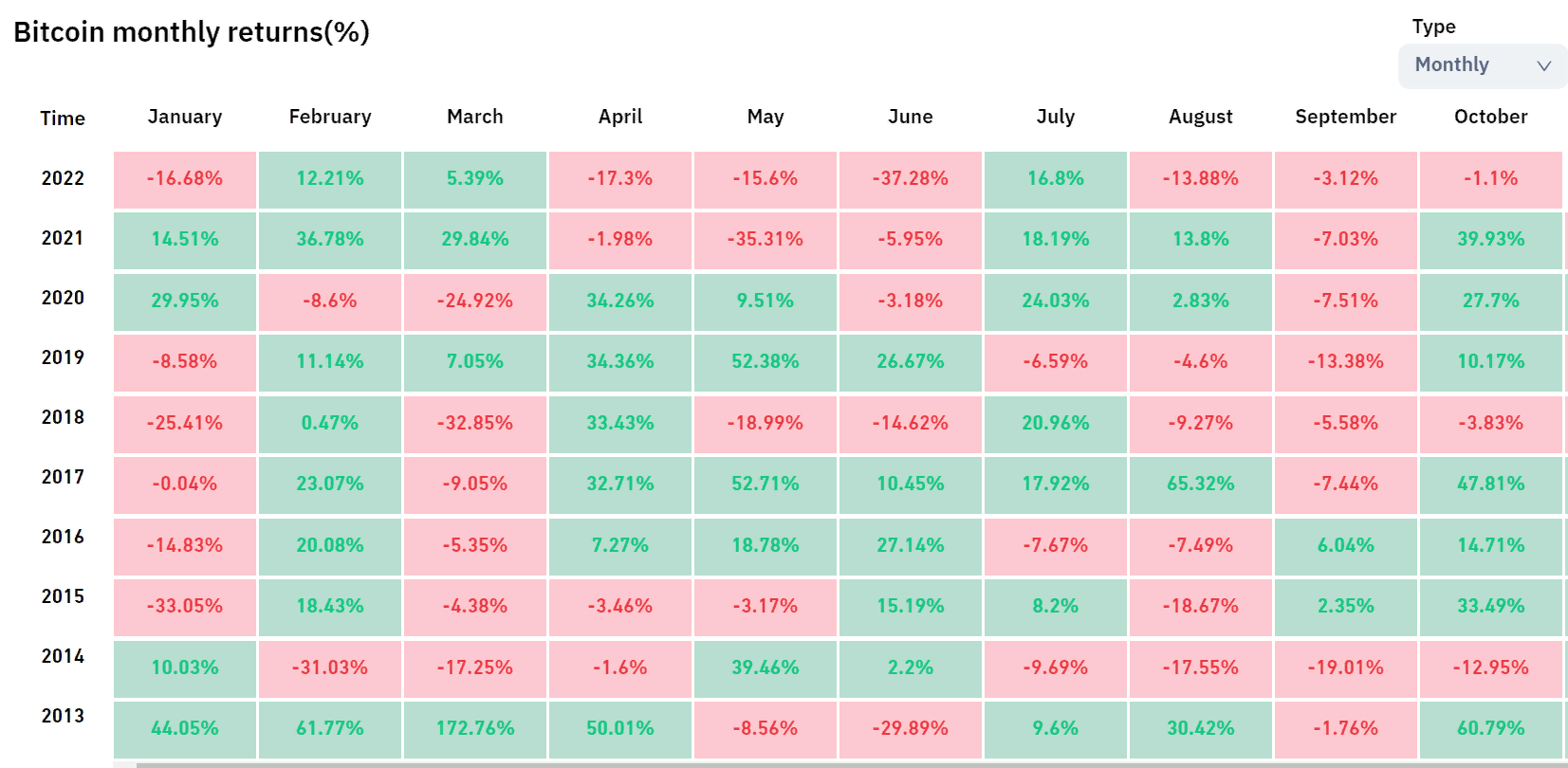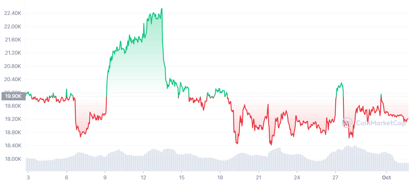 Октябрь биткоин также начал в красной зоне, в ночь на понедельник он подешевел до $19 156. Сентябрь стал неудачным месяцем для BTC шестой год подряд.