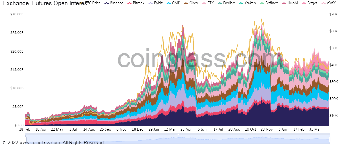 Открытый интерес к биткоин-фьючерсам 6 мая упал до $16,863 млрд - это самое низкое значение с середины марта 2022 года.