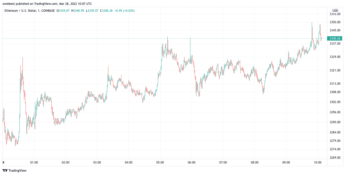 Альткоин в ночь на среду, 30 марта, торгуется на отметке $3450. Рост стоимости эфира наблюдается на фоне активизации десяти крупнейших ETH-адресов.