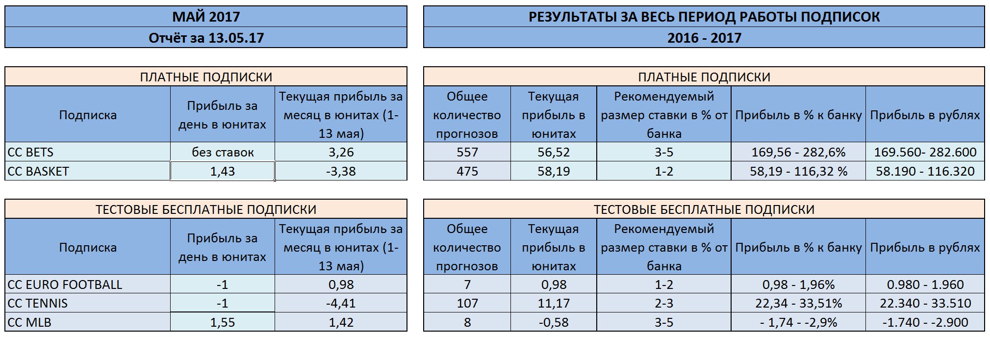 Отчёт по платным и бесплатным подпискам за 13.05.17 и за май в целом.