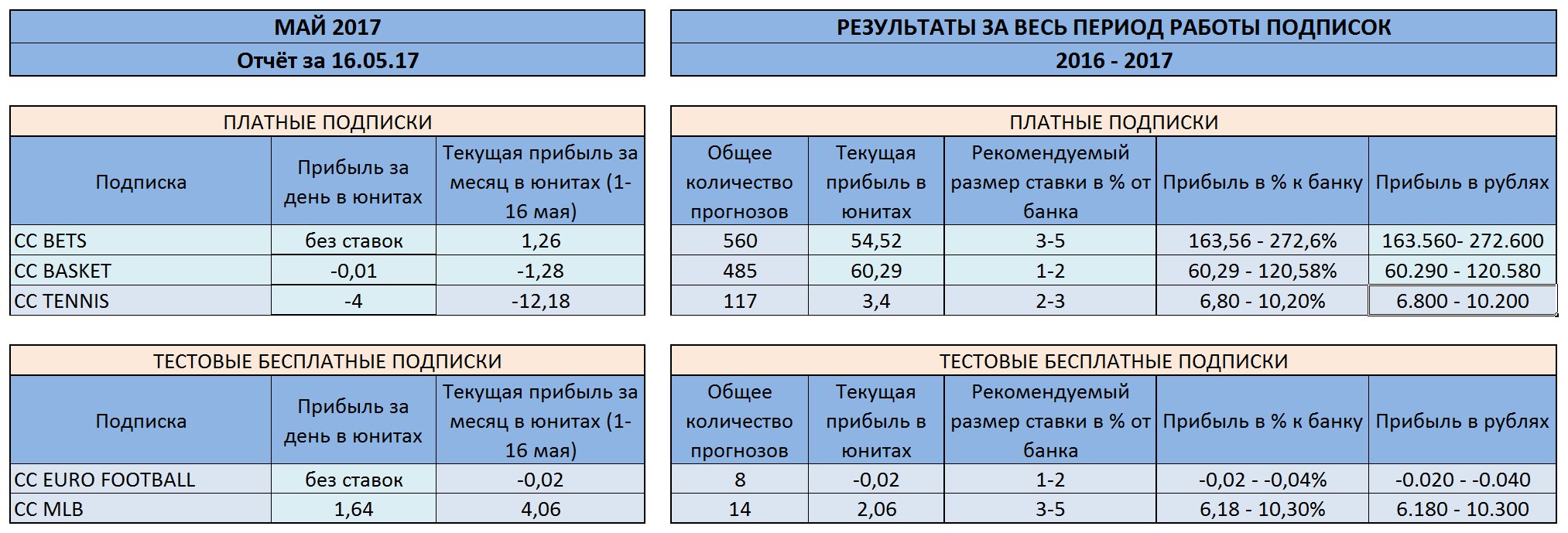 Отчёт по платным и бесплатным подпискам за 16.05.17 и за май в целом.