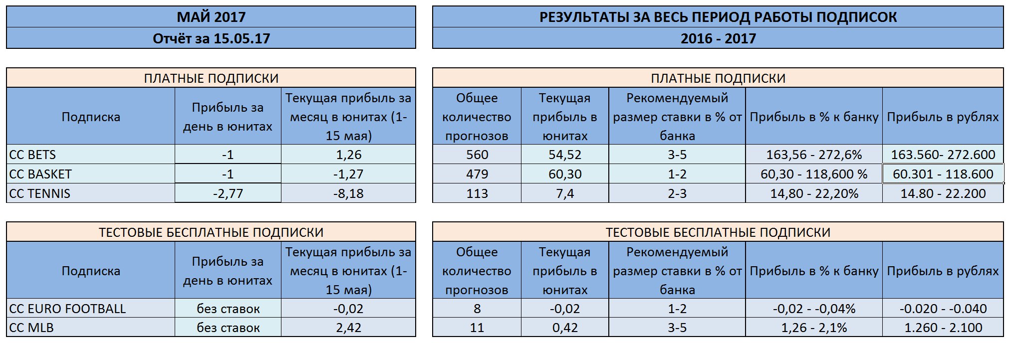 Отчёт по платным и бесплатным подпискам за 15.05.17 и за май в целом.
