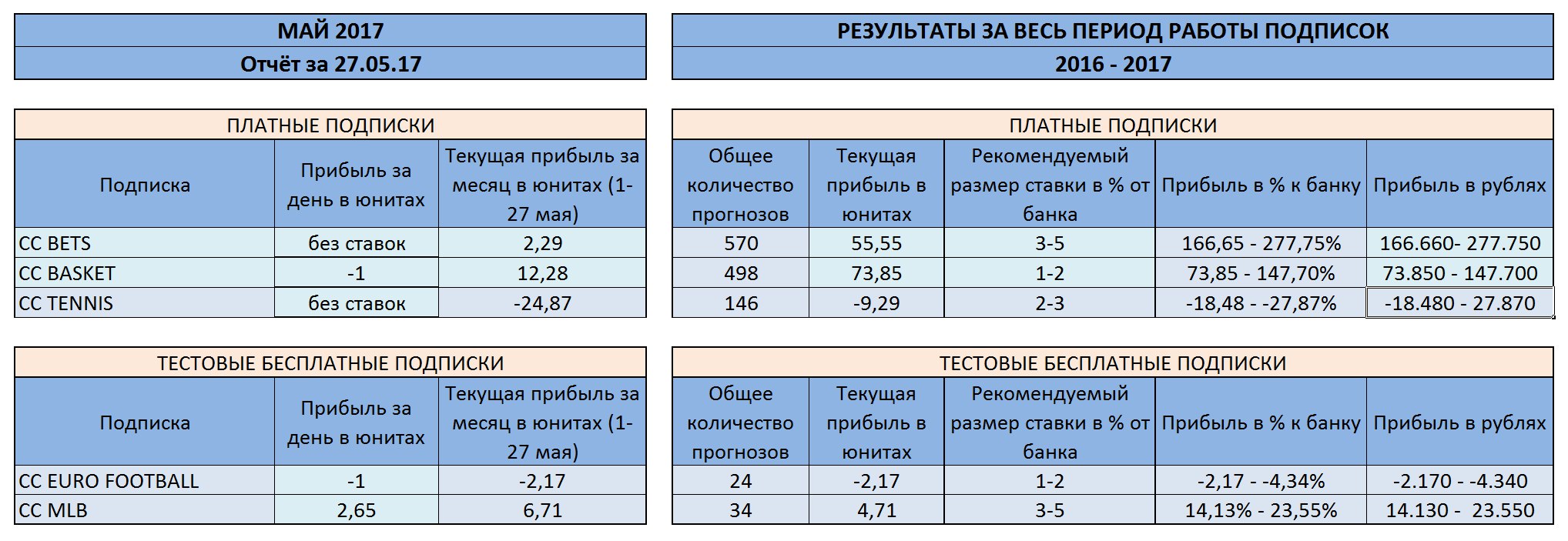 Отчёт по платным и бесплатным подпискам за 27.05.17 и за май в целом.