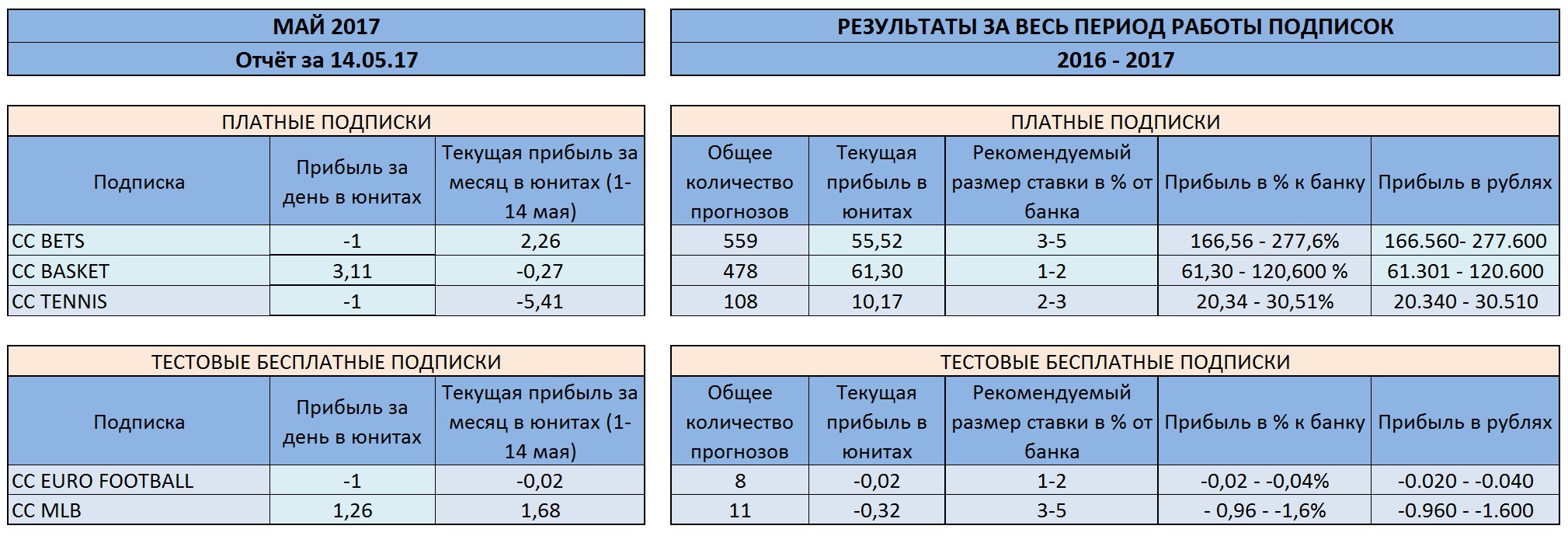 Отчёт по платным и бесплатным подпискам за 14.05.17 и за май в целом.