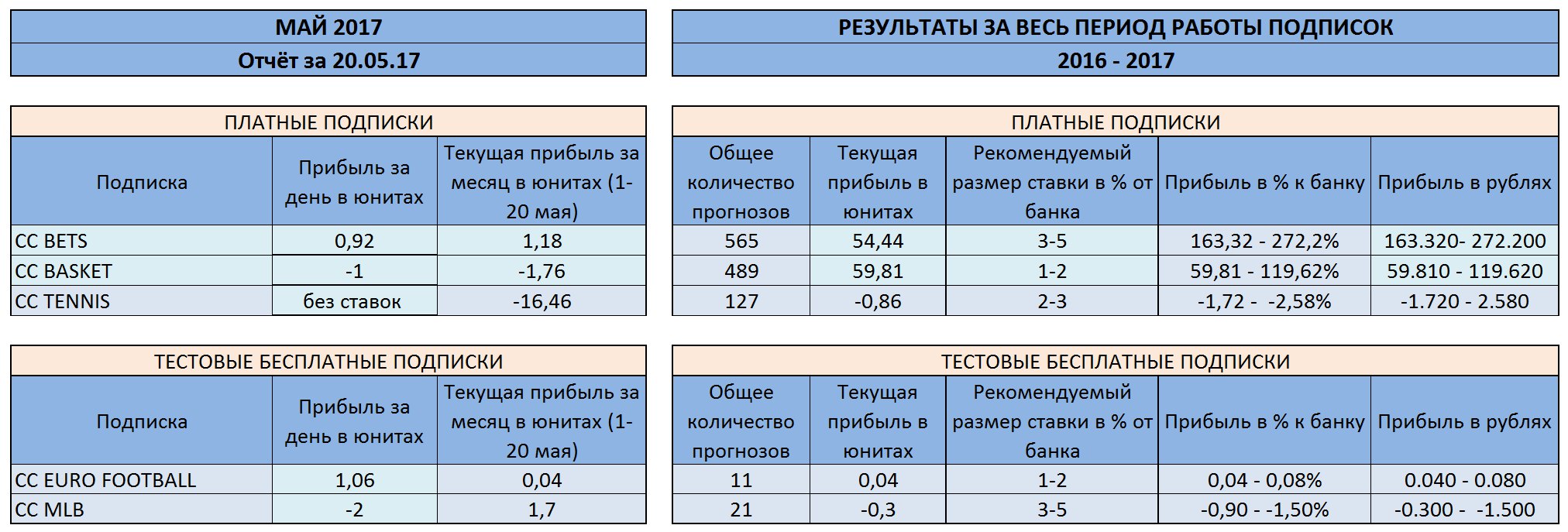 Отчёт по платным и бесплатным подпискам за 20.05.17 и за май в целом.