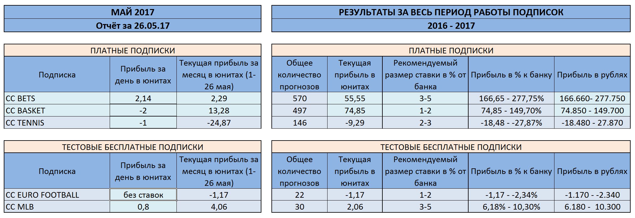 Отчёт по платным и бесплатным подпискам за 26.05.17 и за май в целом.