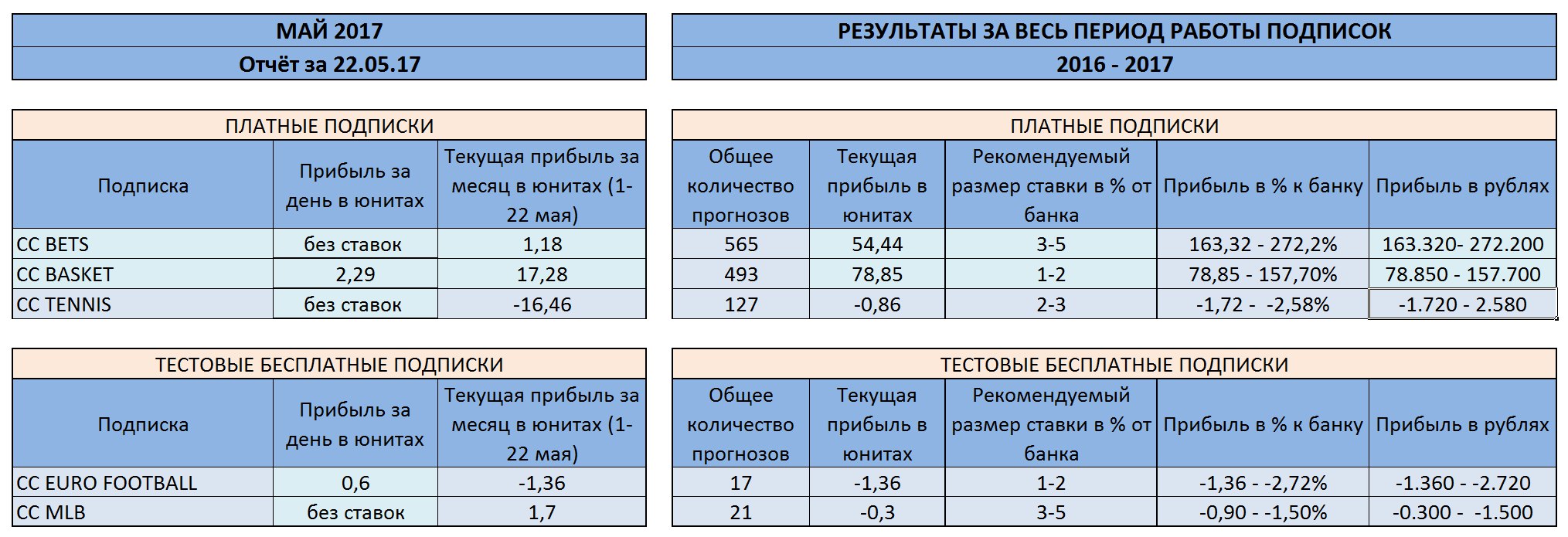 Отчёт по платным и бесплатным подпискам за 22.05.17 и за май в целом.