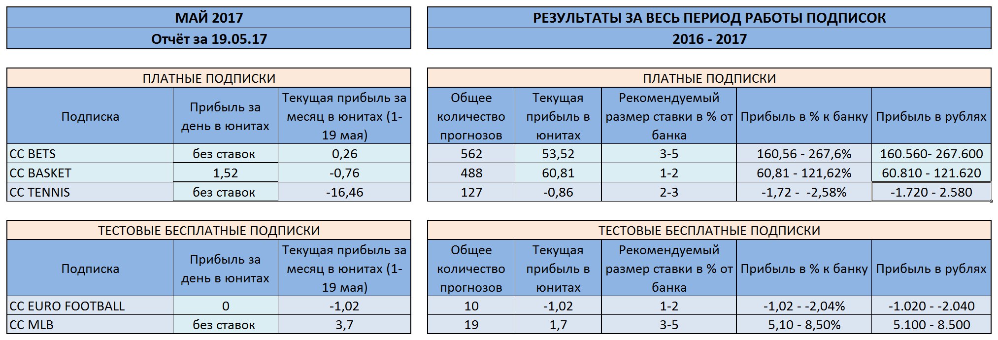 Отчёт по платным и бесплатным подпискам за 19.05.17 и за май в целом.