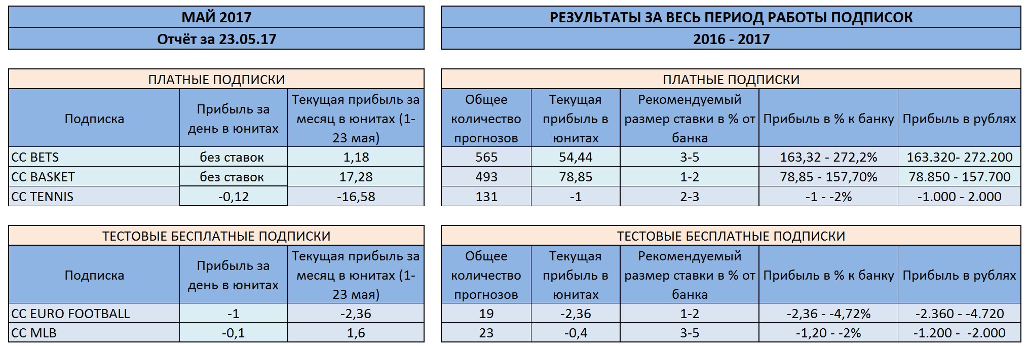 Отчёт по платным и бесплатным подпискам за 23.05.17 и за май в целом.