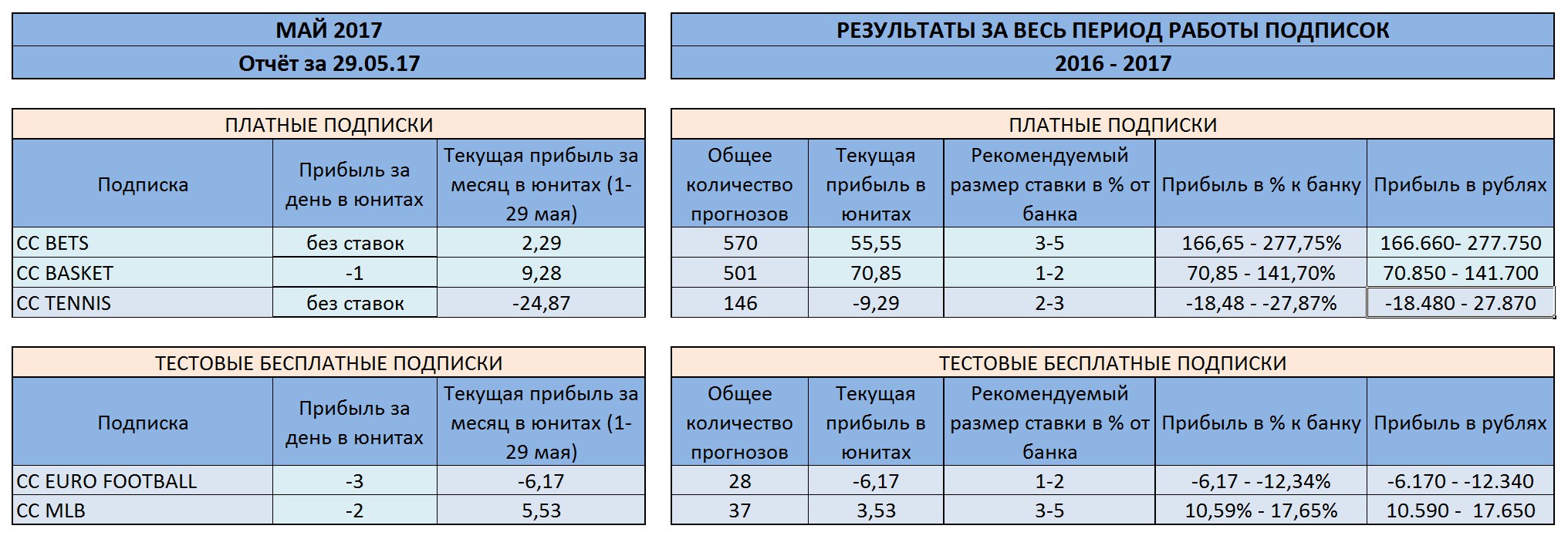 Отчёт по платным и бесплатным подпискам за 29.05.17 и за май в целом.