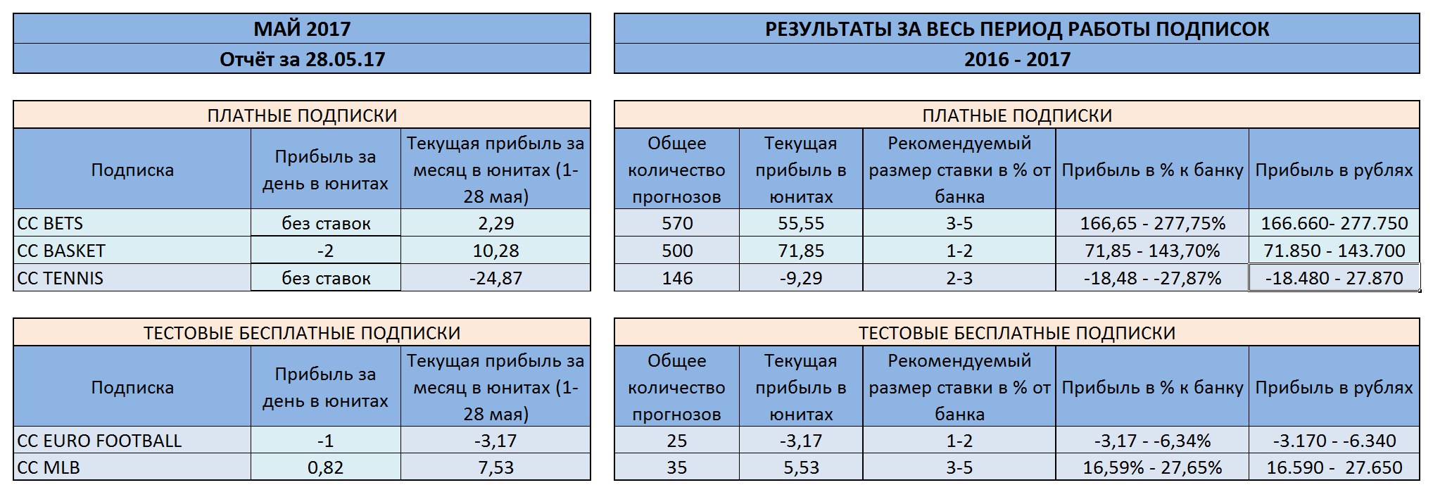 Отчёт по платным и бесплатным подпискам за 28.05.17 и за май в целом.