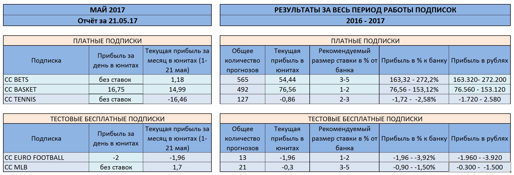 Отчёт по платным и бесплатным подпискам за 21.05.17 и за май в целом.