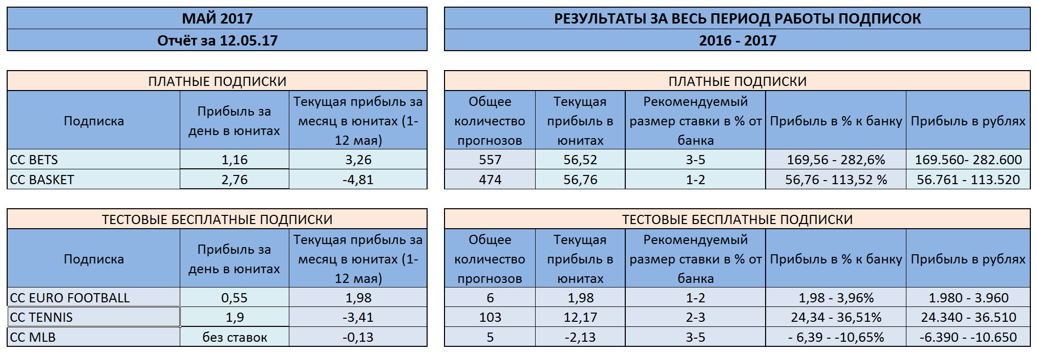 Отчёт по платным и бесплатным подпискам за 12.05.17 и за май в целом.