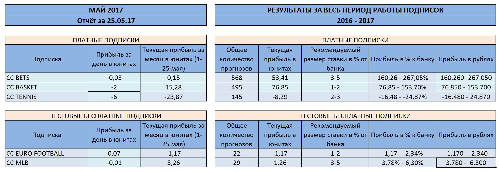 Отчёт по платным и бесплатным подпискам за 25.05.17 и за май в целом.