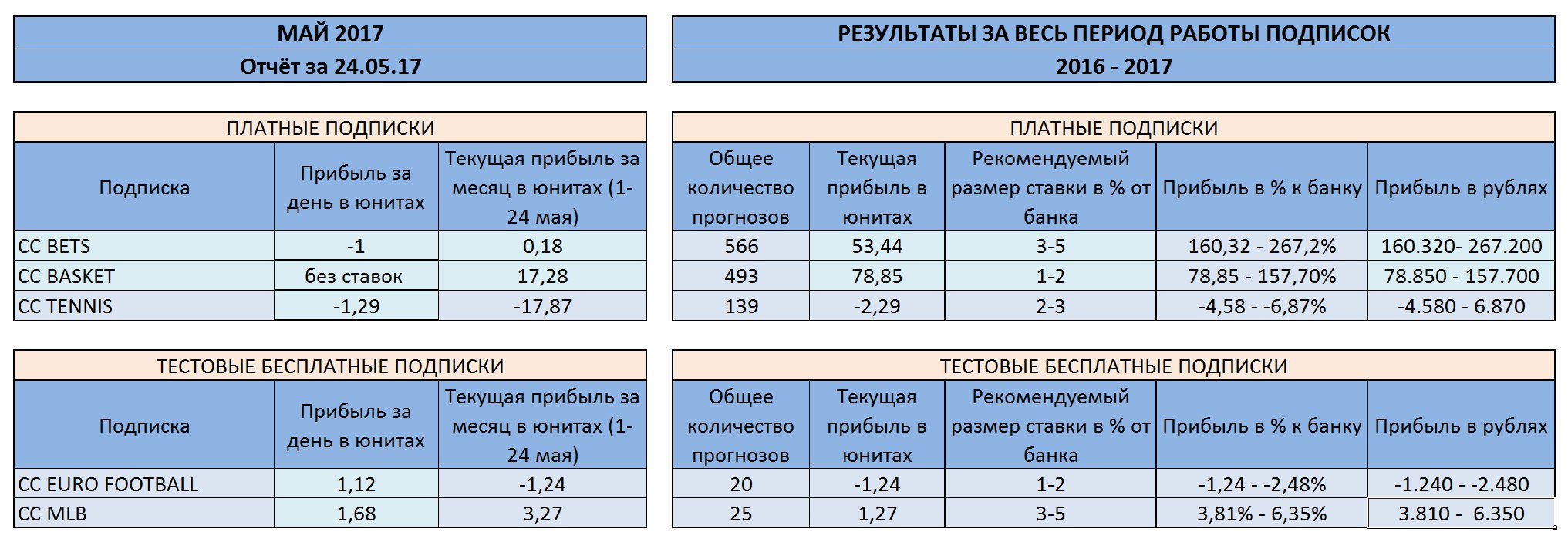 Отчёт по платным и бесплатным подпискам за 24.05.17 и за май в целом.