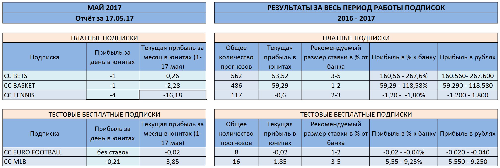 Отчёт по платным и бесплатным подпискам за 17.05.17 и за май в целом.