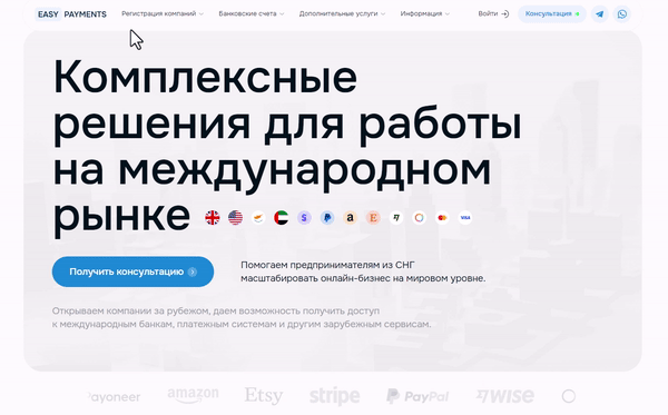 Если раньше на сайте были отражены две главные услуги — регистрация бизнеса за рубежом и подключение международных платежных систем, то сейчас посетители найдут еще несколько возможностей.
