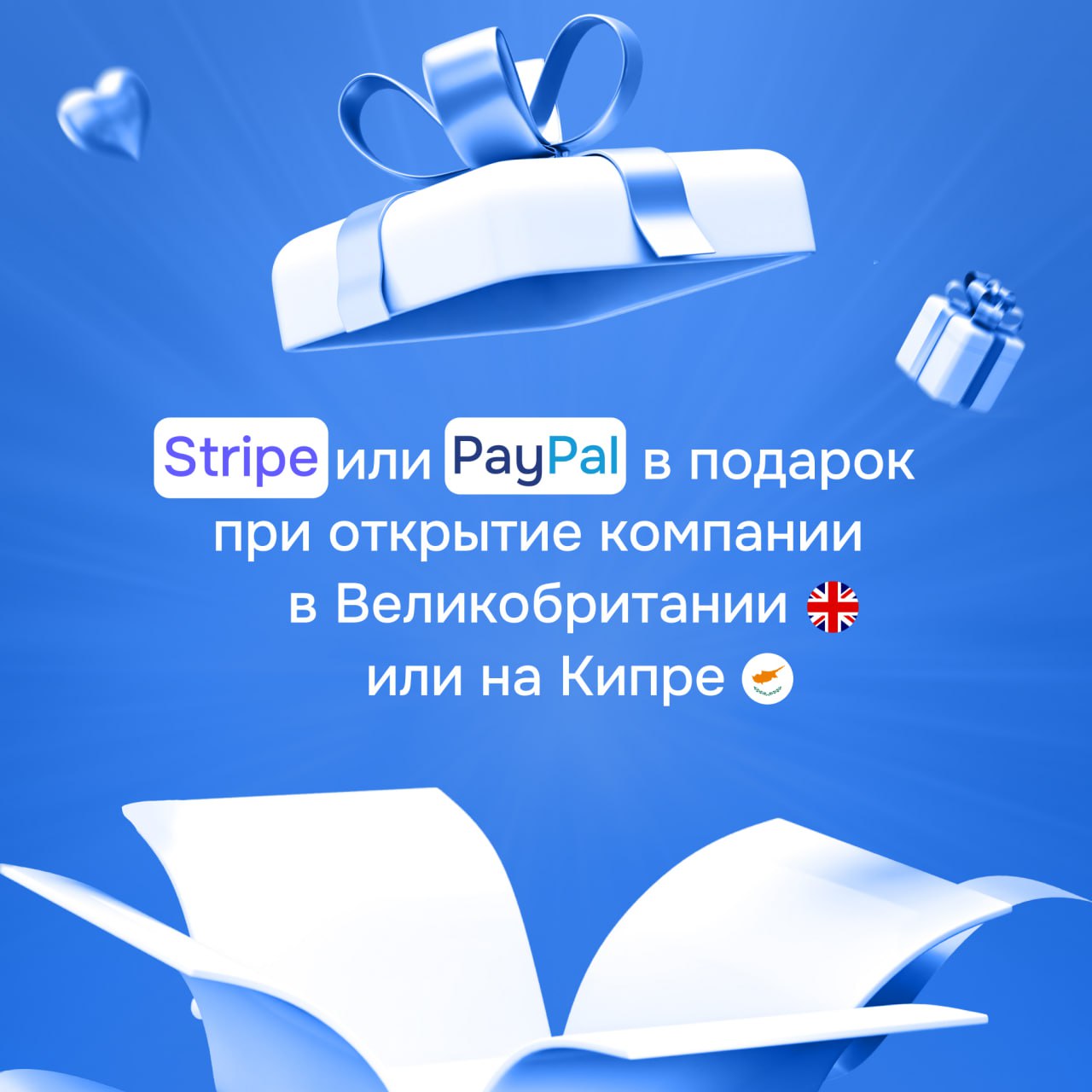 Получите бизнес-аккаунт Stripe или PayPal в подарок при открытие компании в Великобритании или на Кипре