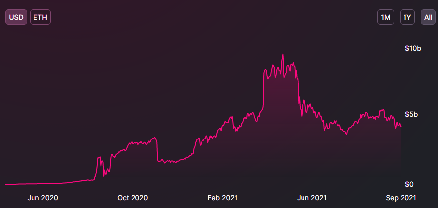 Согласно DeFi Llama, TVL ведущей Ethereum-DEX (суммарно по v2 и v3) составляет $6,65 млрд. На пике в апреле показатель составлял $9,33 млрд; после запуска третьего протокола в начале сентября — 8,30 млрд.