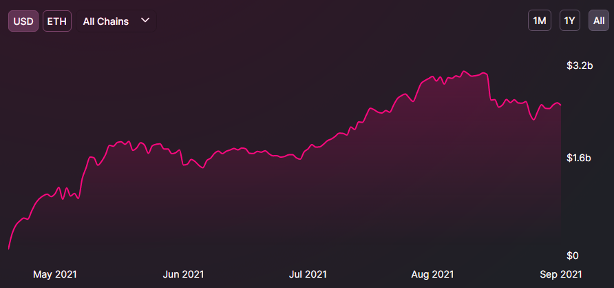 Объем заблокированных активов в Uniswap v3. Данные DeFi LLama.