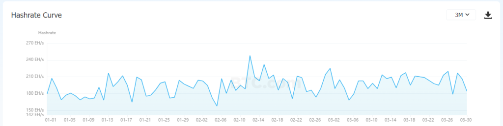 Средний хешрейт во второй раз за последние две недели опустился ниже отметки 200 EH/s, составив 184,23 EH/s.
