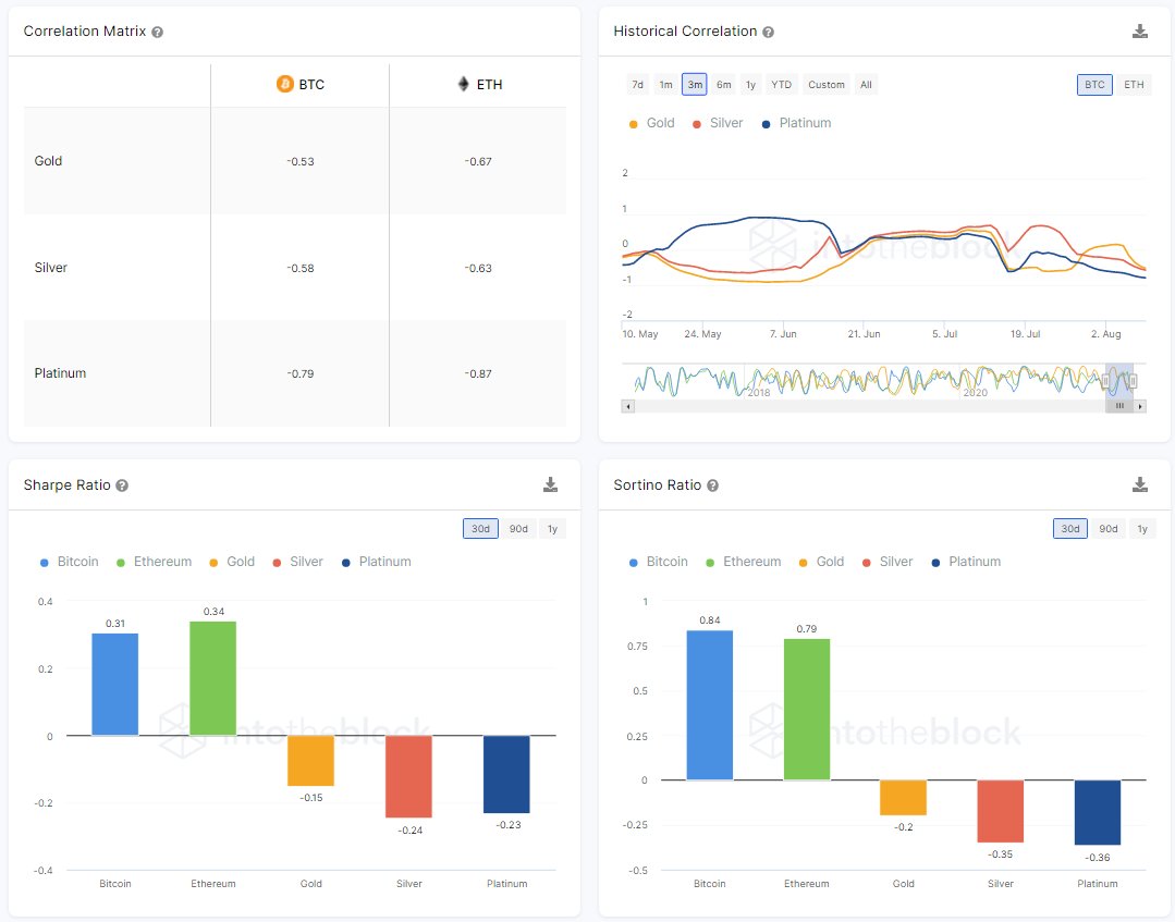 Золото и серебро теряют в стоимости со второй половины прошлой недели. При этом биткоин и эфир, напротив, демонстрируют восходящую динамику движения. Между BTC и золотом наблюдается обратная корреляция. Соответственно трейдерам нужно учитывать влияние этого фактора на на ход торгов.