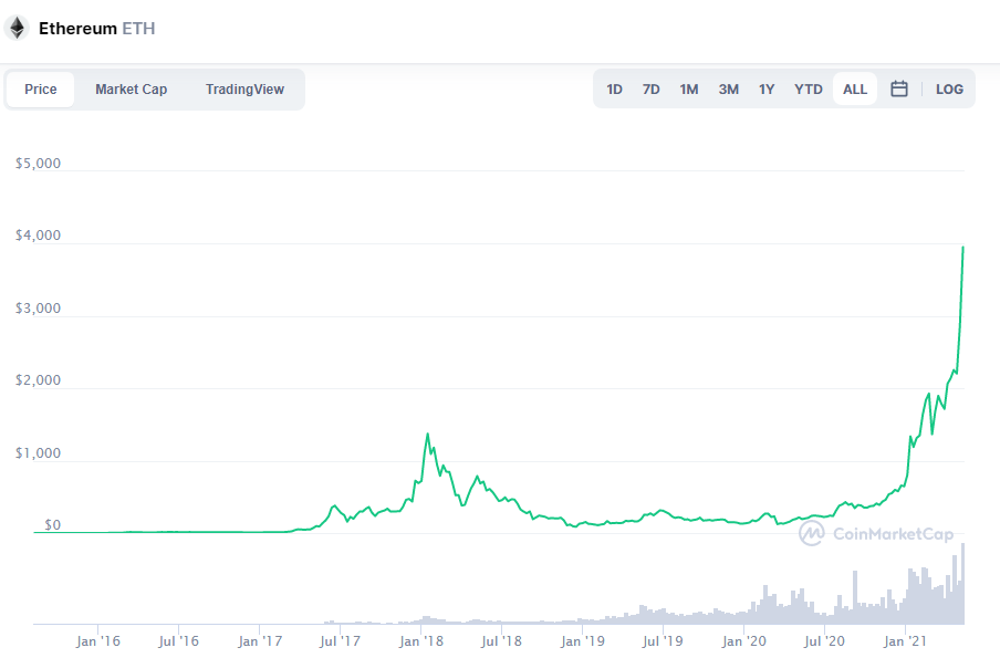 Курс эфира (ETH) продолжает укрепляться. На этой неделе монета закрепилась на уровне $3500 и не остановилась на достигнутых результатах. Сегодня курс ETH установил новый рекорд, достигнут $3930.