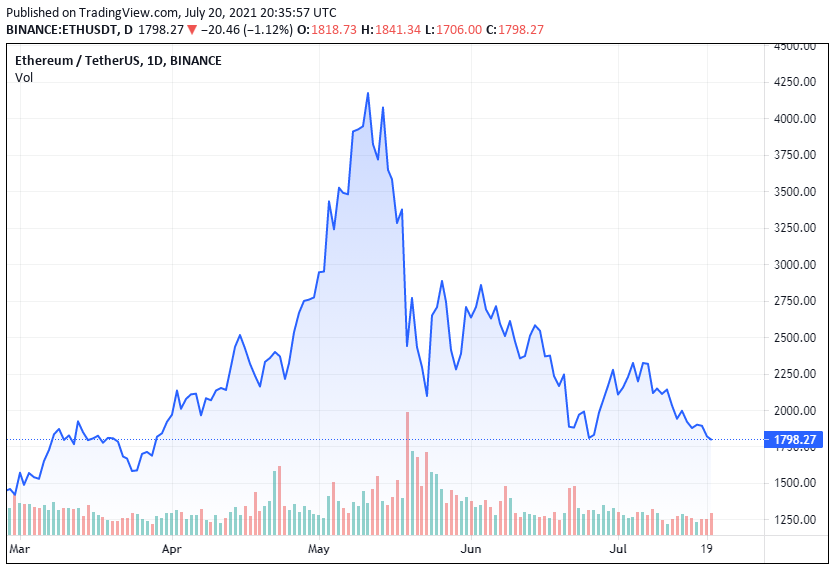 ETH смог отскочить после падения до $1757 - это минимальное значение с 22 июня.