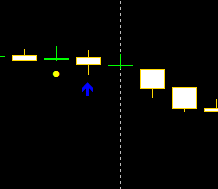 Точка входа рассмотрена на основе Опциона Call: показания индикатора nonlagdot голубого цвета, показания индикатора NVC Light пересекают нижний уровень -4, чему свидетельствует изменение его цвета на красный и сопровождается звуковым сигналом. Свеча, на которой появился сигнал, должна быть медвежья. Цена открытия должна отличаться от цены закрытия (т.е. чтобы у свечи было тело). Чем меньше тени по отношению к телу свечи, тем лучше.