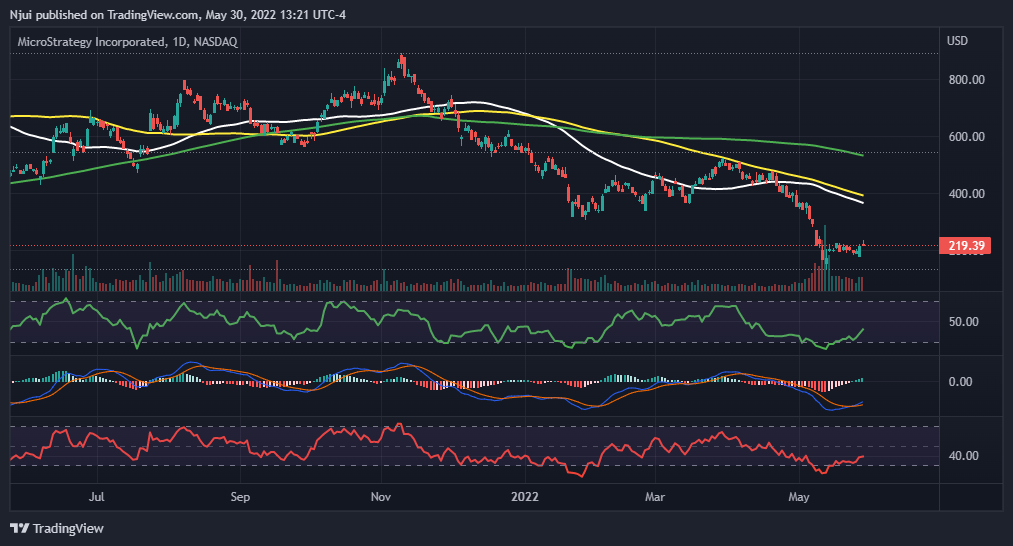 Объем торгов акциями MSTR действительно резко вырос в мае, в этот момент произошла капитуляция. Такие данные подтверждают выводы Су Чжу.