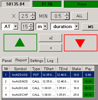 Можно с тобой в личке где нибудь пообщаться немного? Не мейле например, идея есть небольшаяMaxi2695, в вашем случае редактировать настройки новой прокладки т.е. файла mq4 c помощью любого текстового редактора,сохранить настройки,изменить в советнике название прокладки на Binary_Atom_Bomb_v4_prok,настроить советник и пробовать торговать.Да в настройках советника всегда должна стоять галочка напротив Разрешить советнику торговать.Сама прокладка выложенная вчера вполне рабочая,вижу пошли ставки на демо![]()