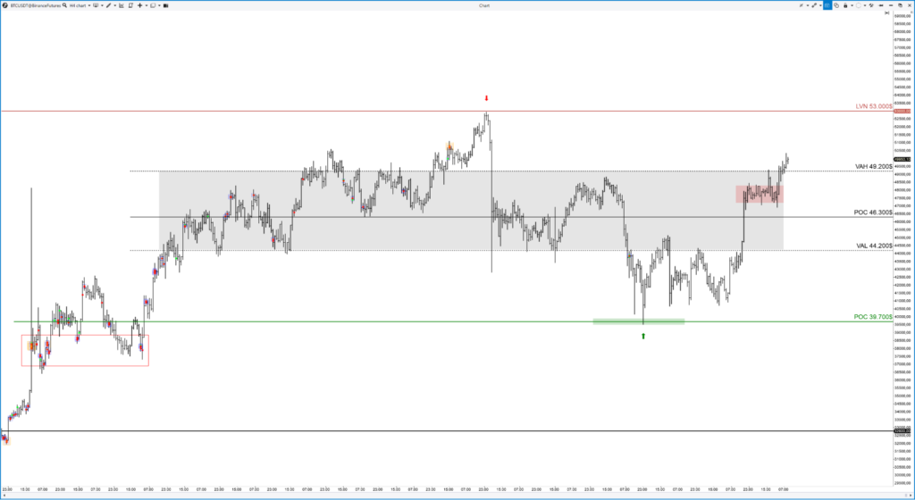 BTC закрепился над ключевым уровнем сопротивления $49 200. Эта отметка является верхней границей зоны стоимости накопления, в котором цена провела больше двух месяцев.