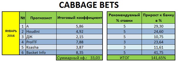 3-я колонка - прирост к банку за месяц в % при сумме ставки на каждый, которая указана во 2 колонке. Сумма ставки в 3-ей колонке расписана исходя из надёжности и уверенности в прогнозисте.