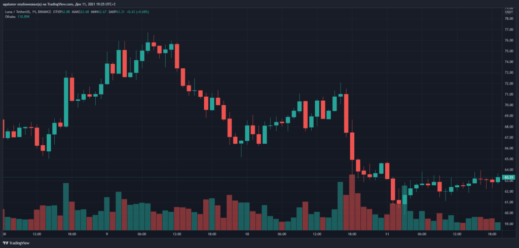 5 декабря нативный токен протокола Terra (LUNA) обновил ценовой максимум на отметках выше $78 (на бирже Binance). Котировки достигли пика на фоне значительного притока средств в экосистему проекта — TVL в DeFi-приложениях превысил $14 млрд.