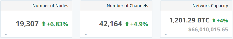 На момент написания в сети LN работает 19 307 нод и 42 164 платежных канала.