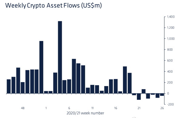 По наблюдениям аналитиков, отток средств из продуктов на базе криптовалют происходит на протяжении последних четырех недель.