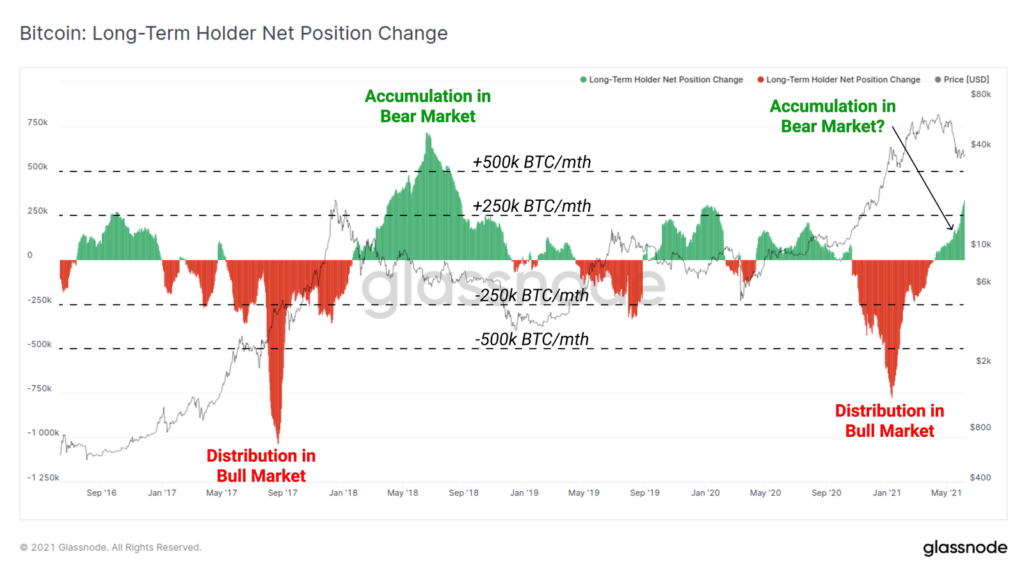 Динамика изменения чистой позиций долгосрочных биткоин-инвесторов. Данные: Glassnode.