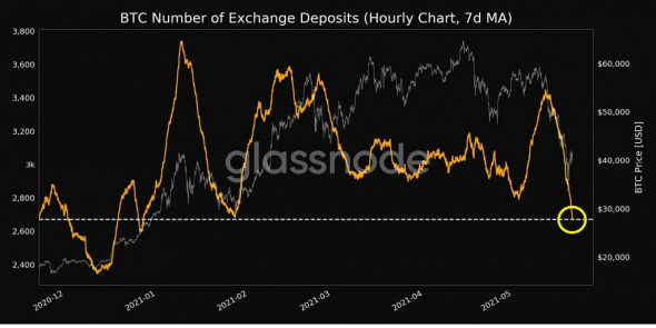 По данным Glassnode, только 17 мая на торговые площадки были отправлены более 40 000 биткоинов.