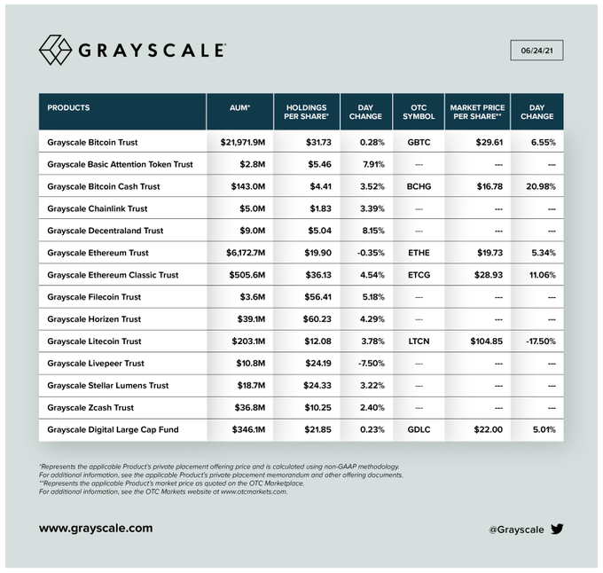 На данный момент биткоин-траст Grayscale контролирует BTC на общую сумму до $21,97 млрд. Всего же под управлением компании находятся цифровые активы на $29,5 млрд.