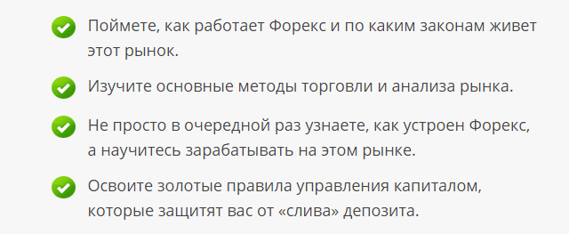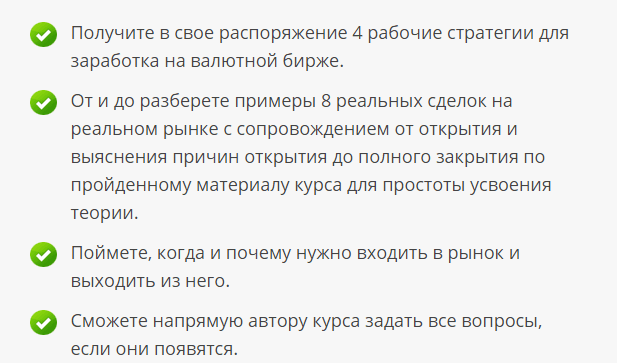 Узнать, чем может быть интересен вам форекс, как вести себя новичку, как заработать в первые дни торговли вы сможете в этом видеокурсе. Все основные вопросы, возникающие у новичков, максимально подробно освещены и разобраны. Пройдя обучение, вы получите новые возможности и перспективы.