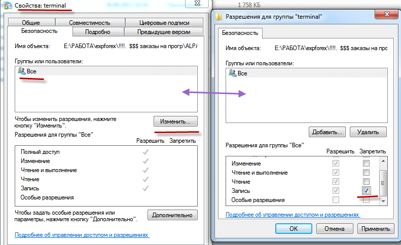 Правой кнопкой на файле - Свойства - Вкладка Безопасность - Изменить *(пример показан на рисунке):