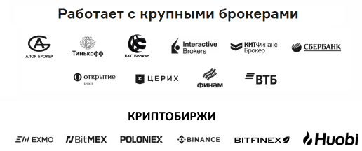 Работаем с QUIK, Transaq connector, plaza2, interactive brokers, криптобиржами и открыт API для написания своих коннекторов – позволяет быстро подключиться к любой бирже или терминалу. Уникальная возможность разработать коннектор своими руками тем, кто знаком с языком C# или заказать его разработку.
