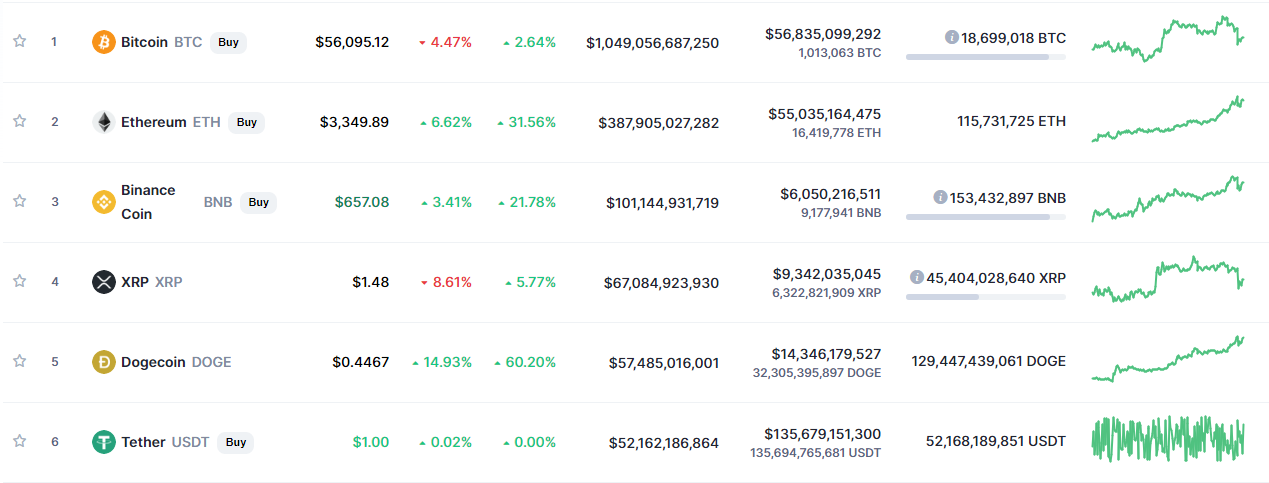 DOGE, по признанию Маска, это его любимая монета. Еще на прошлой неделе этот альткоин не только удержался в первой десятке криптовалют, но и смог прорваться в топовую пятерку цифровых активов по версии CoinMarketCap.