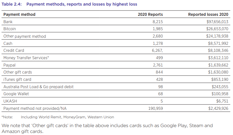 В 2020 году злоумышленники украли у австралийцев более $39 млн с помощью мошеннических схем, включающих биткоин и другие платежные методы. Об этом сообщила Австралийская комиссия по вопросам конкуренции и защиты потребителей (ACCC).