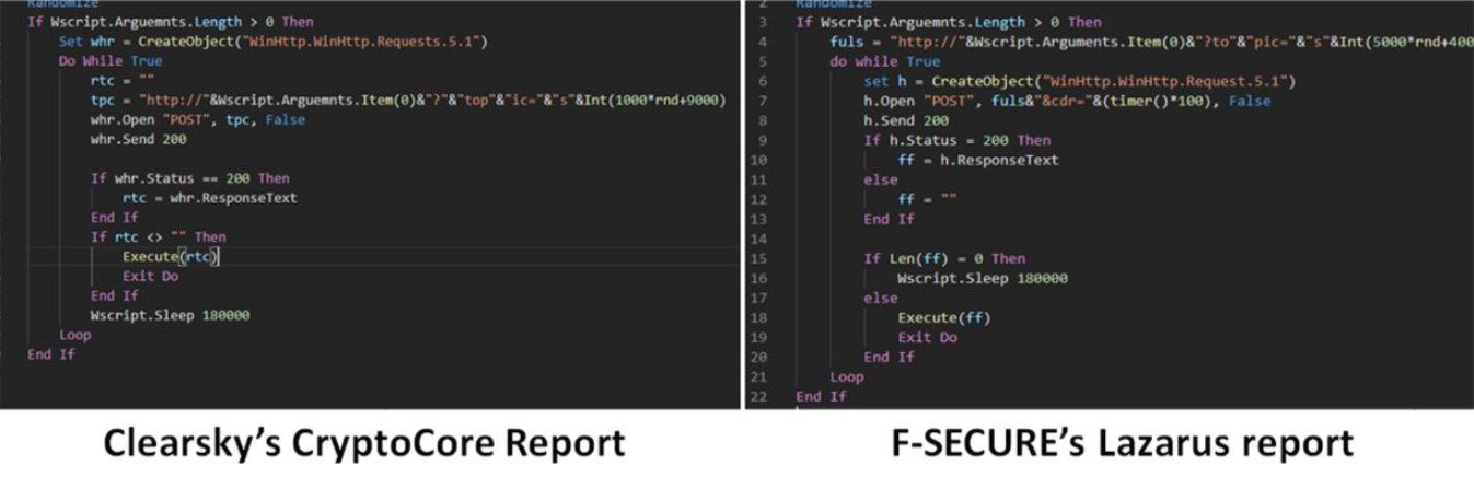 Хакерская группировка Lazarus, которую связывают с властями Северной Кореи, несколько лет взламывала биткоин-биржи по всему миру под видом организации CryptoCore. К такому выводу пришли исследователи безопасности из компании ClearSky. Злоумышленники опустошали криптовалютные кошельки пользователей и сотрудников торговых платформ с помощью целевого фишинга. При общении с жертвами хакеры убеждали их загрузить вредоносный файл. Эксперты ClearSky сравнили отчеты об этих атаках от компаний F-Secure, CERT JPCERT/CC и NTT Security. Помимо сходства в поведении и исходном коде, вредоносы CryptoCore обладают характерными признаками, которые содержатся в [simple_tooltip content='инструмент для идентификации и классификации вредоносных программ']YARA-правилах[/simple_tooltip] ESET и Kaspersky для Lazarus. [caption id="attachment_136468" align="alignnone" width="1424"]