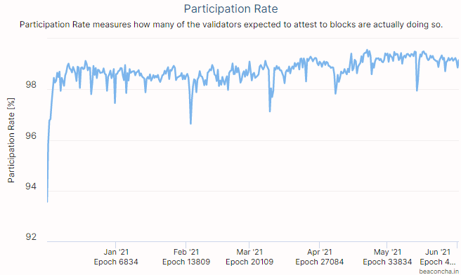 Динамика показателя участия валидаторов в Ethereum 2.0. Данные: beaconcha.in.