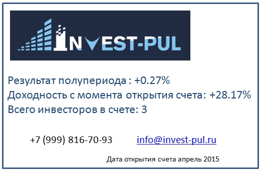 Профессиональный трейдер ведет торговлю на Московской бирже. В торговле используются фьючерсы, акции, реже облигации и опционы. Торговый период 1 мес. По окончании торгового периода производится взаиморасчет с инвестором. Все денежные расчеты выполняются исключительно банковскими или карточными переводами. Установленный торговый риск, после которого торговля прекращается – 25%.