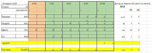 Результаты работы 16й недели 2015 года +84$ (+5.25% от депозита).