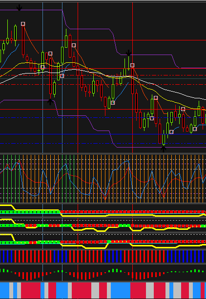 Если не получается торговать в+ по данной стратегии, хотя я этого не понимаю, может действительно смотреть два таймфрейма, тогда все получится. Что самое забавное развороты стратежка показывает на ура, и это на м1, где шумов масса. По сути я объединил 2 стратегии в одну на одном тф м5 подстраховка на м1 работаем по стратегии и берите только понятные вам сигналы не стоит лезть в сделку если у вас на м5 ,например, тренд прет вверх, а на м1 все указывает на низ. При таком раскладе фиаско сделки неизбежен или равен 50\50, можно входить только на 1-2 свечи и то не факт, что цена пойдет в вашу сторону. Еще одно правило, не торгуйте во флэте, боллинджер это хорошо демонстрирует ну и 2 нижних подвальных индюка тоже показывают флэты. На скрине постом выше как раз флэт.